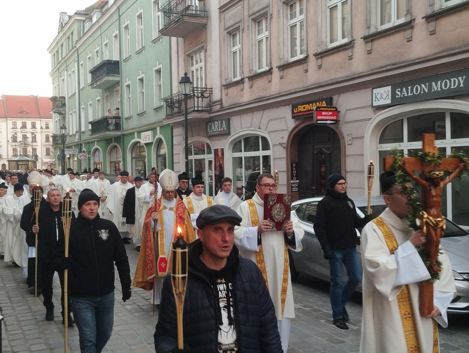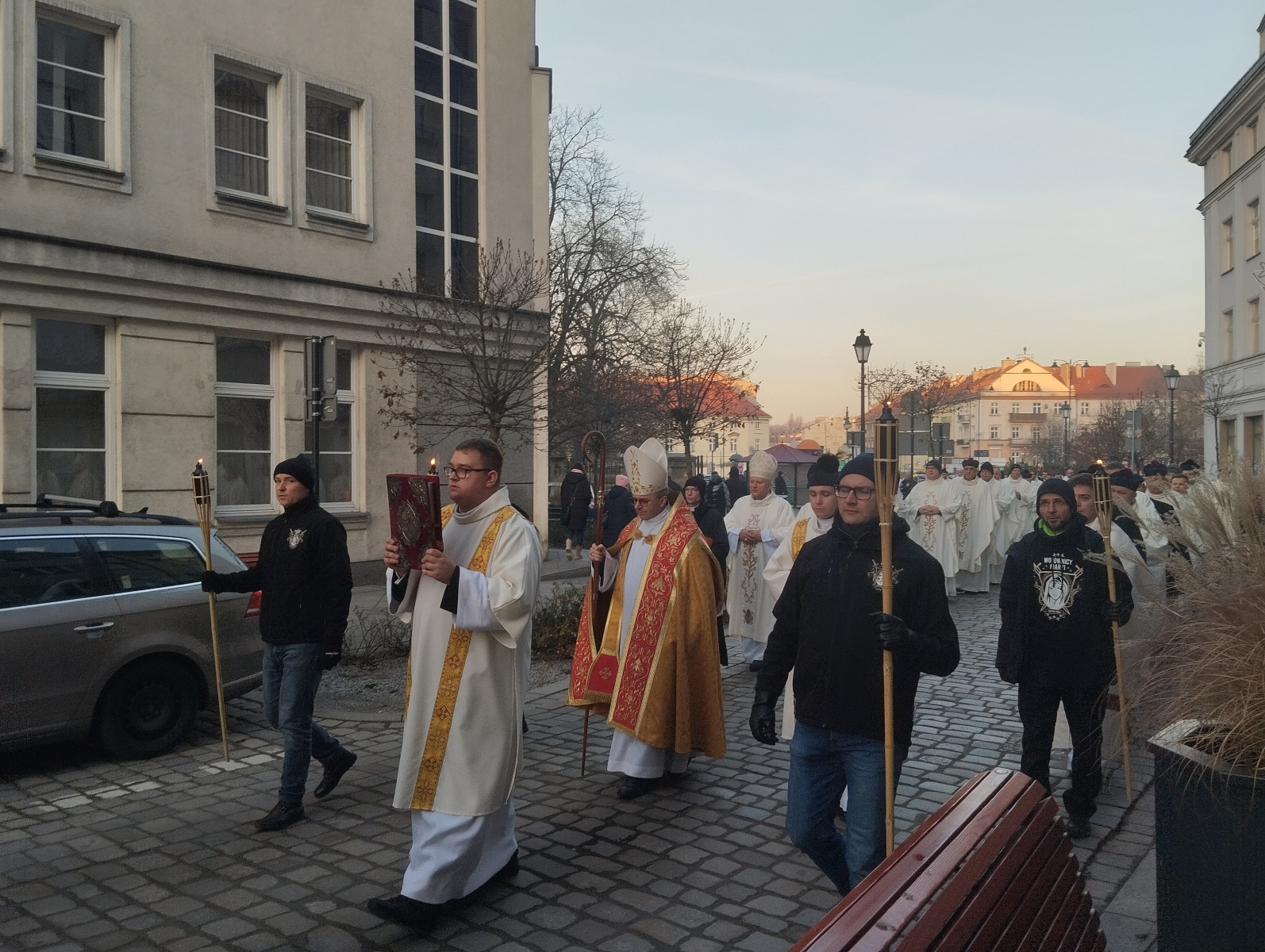 29 grudnia 2024 r. w niedzielę Świętej Rodziny miało miejsce uroczyste rozpoczęcie Roku Jubileuszowego 2025 w naszej Diecezji. To wspólna data dla wszystkich kościołów katedralnych na całym świecie. Otwarcie Roku rozpoczęło się w Bazylice Świętego Józefa specjalnym nabożeństwem o godz. 15:00. Modlitwa jubileuszowa, odczytany fragment Ewangelii św. Jana ( początek 14 rozdziału, w którym Jezus na prośbę uczniów, aby im pokazał drogę do Ojca, wskazuje na siebie, że On jest Drogą, Prawdą i Życiem ) oraz wybrane fragmenty bulli jubileuszowej papieża Franciszka ”Spes non confundit” wypełniły nabożeństwo. Następnie wszyscy w uroczystej procesji za Krzyżem przeszli ulicami centrum miasta do katedry kaliskiej śpiewając Litanię do Wszystkich Świętych. Przed drzwiami katedry procesja zatrzymała się na chwilę, aby oddać hołd i uwielbienie Chrystusowi na drzewie krzyża. Uroczystą Mszę św. pod przewodnictwem Biskupa Kaliskiego Damiana Bryla koncelebrował Ks. Biskup Łukasz Buzun i kilkudziesięciu kapłanów. W uroczystościach nie zabrakło przedstawicieli Akcji Katolickiej. Podczas Mszy św. dwa poczty sztandarowe Diecezjalnego Instytutu i miejscowego katedralnego Parafialnego Oddziału towarzyszyły całej odświętnej liturgii. W homilii Ks. Biskup zachęcał diecezjan, wspólnoty parafialne ze swoimi duszpasterzami do 5 rzeczy: przeprowadzenia misji we wszystkich parafiach, aby w tym czasie przyciągnąć do Kościoła szczególnie tych, którzy od niego odeszli; do pogłębienia swojej wiary i relacji z Bogiem, przez pogłębioną modlitwę i pielgrzymowanie; do odnowy i umocnienia parafii, wspólnot parafialnych i diecezjalnych; do przebaczenia wobec tych, z którymi kontakty dawno się już pogorszyły, czy popsuły i w końcu do bycia świadkami nadziei, aby w sobie ją umocnić i zanieść ją innym. Zachęta do pielgrzymowania w tym Roku towarzyszyła słowom Ks. Biskupa w wielu miejscach homilii. Mszę św. zakończyło wręczenie specjalnych dekretów księżom proboszczom tych kościołów, które zostały wyznaczone jako jubileuszowe w naszej diecezji ( jest ich łącznie 15, a 16-tym miejscem jest Góra Krzyża Jubileuszowego pod Ostrzeszowem ) oraz uroczyste błogosławieństwo wszystkich zebranych na Mszy św.